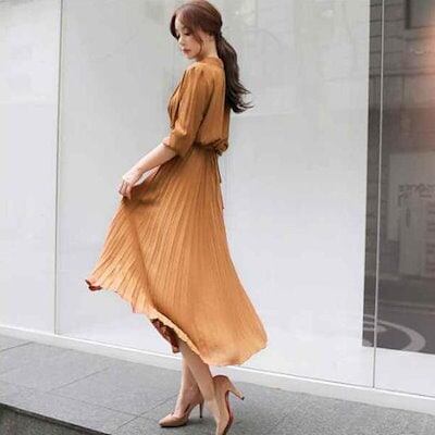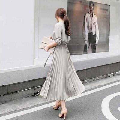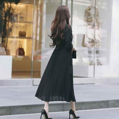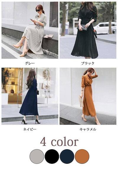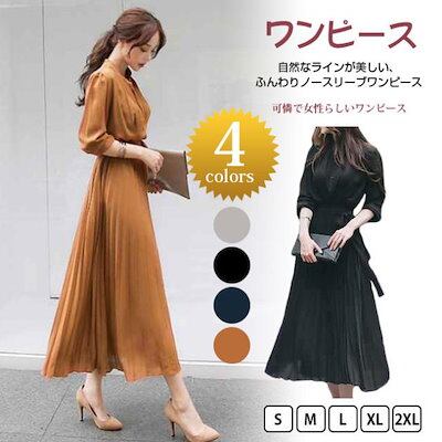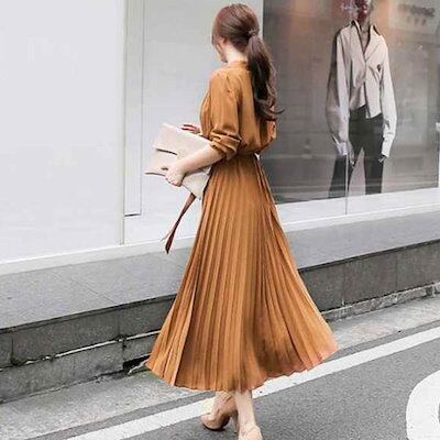 【2点2OO円OFF!】ワンピース ロング丈 秋ロングワンピース 長袖 ワンピ 無地 ひざ下丈 ミモレ きれいめ レディース ゆったり プリーツ カジュアル 大人 上品 ギフト 秋服 秋冬 | koookooo