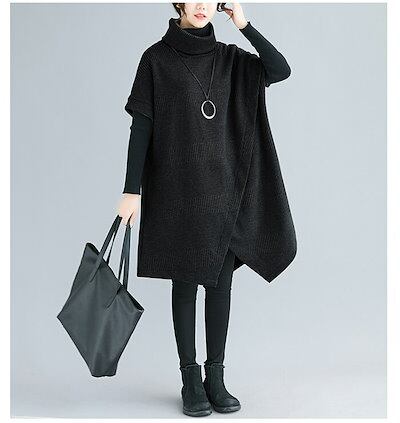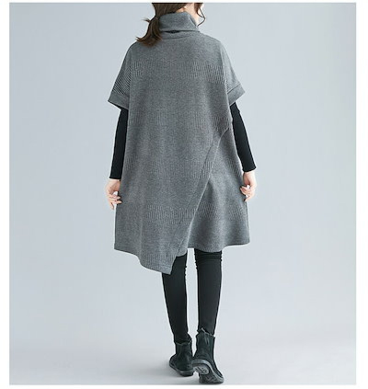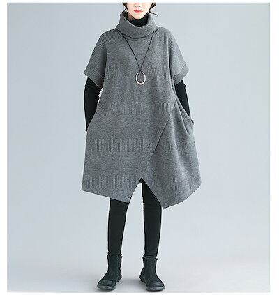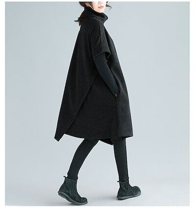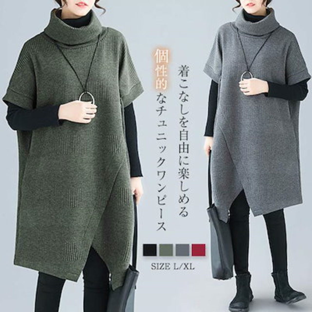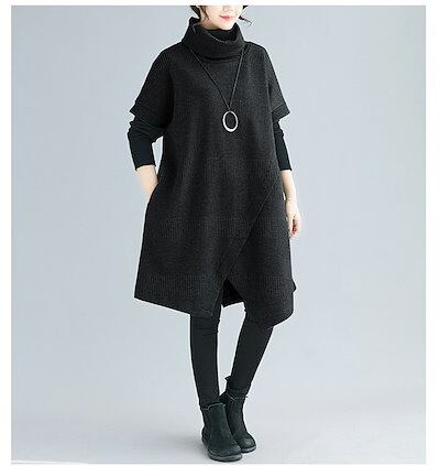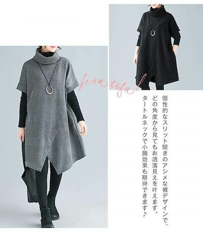 ワンピース レディース 秋 冬 チュニックワンピース チュニック ワンピース エスニック 重ね着 レイヤード 大人 上品 ひざ丈 アシンメトリー ハイネック タートルネック カジュアル 痩せる効果 半 | koookooo
