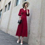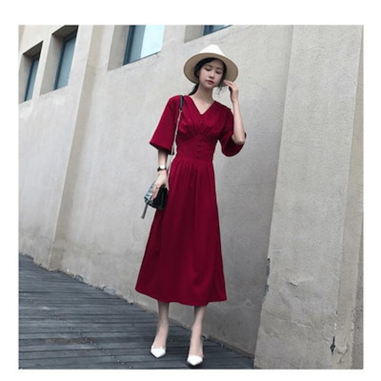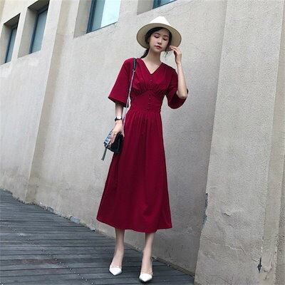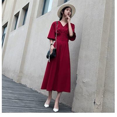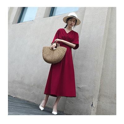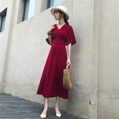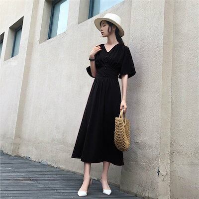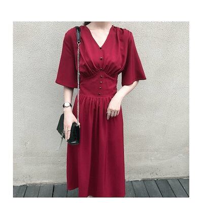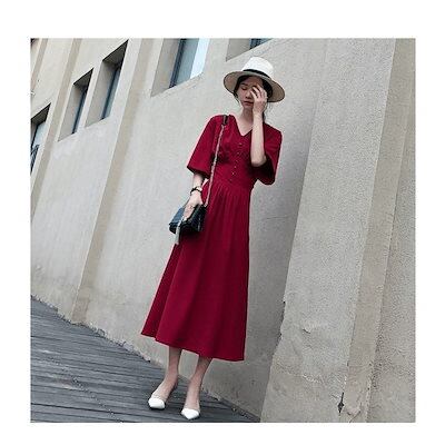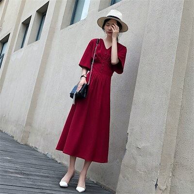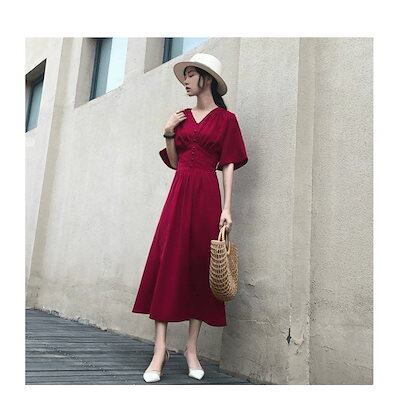 ワンピース レディース キレイめ ひざ丈 春夏 半袖ワンピース シフォンスカート vネック 韓国風 大きいサイズ 通勤 OL オシャレ 着痩せ