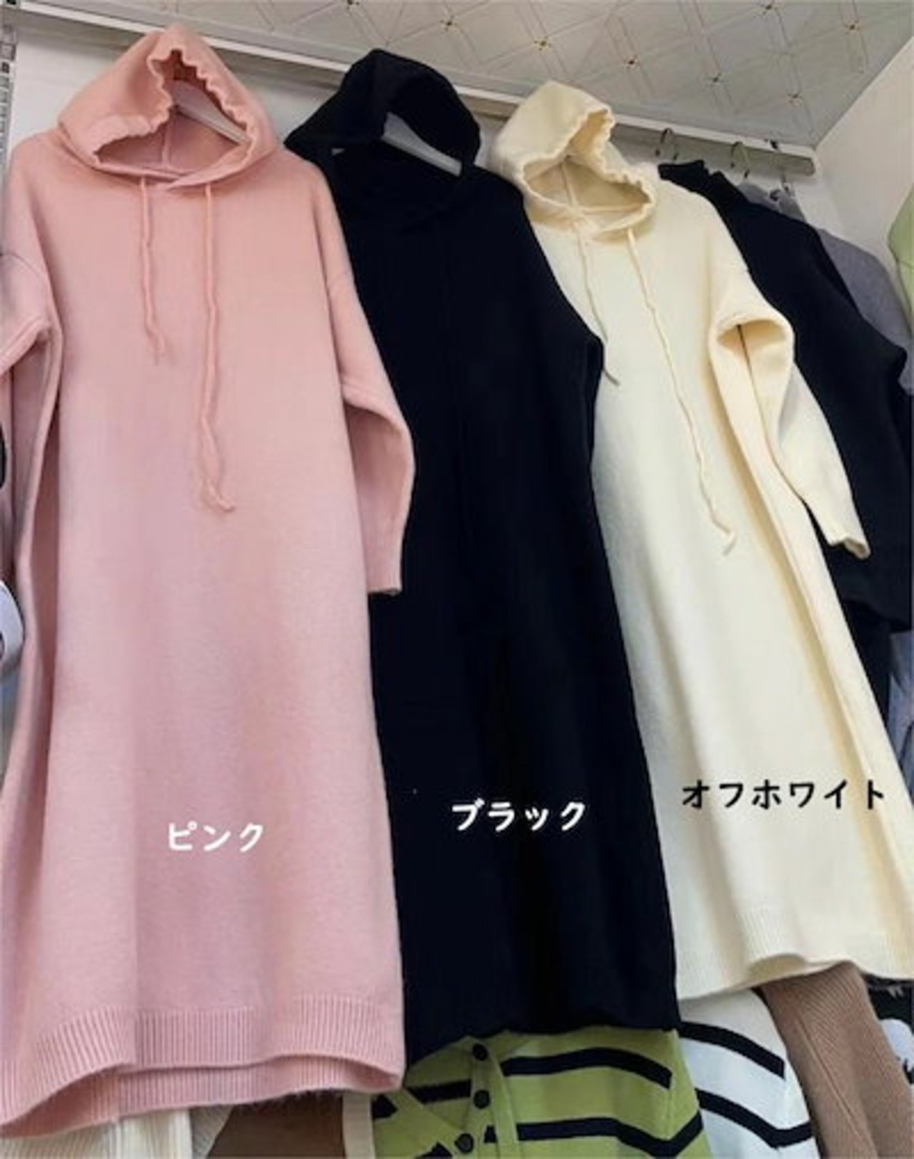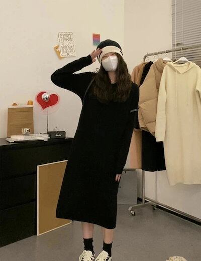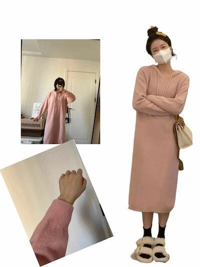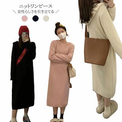 早いもの?ち ニットワンピース 秋冬 フード付き 長袖 無地 春物 大きいサイズ ロング丈 パーカー 重ね着 ゆったり あったか ひざ下丈 マキシ丈 お呼ばれ きれいめ 体型カバー レディースワンピー | koookooo