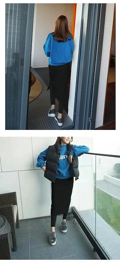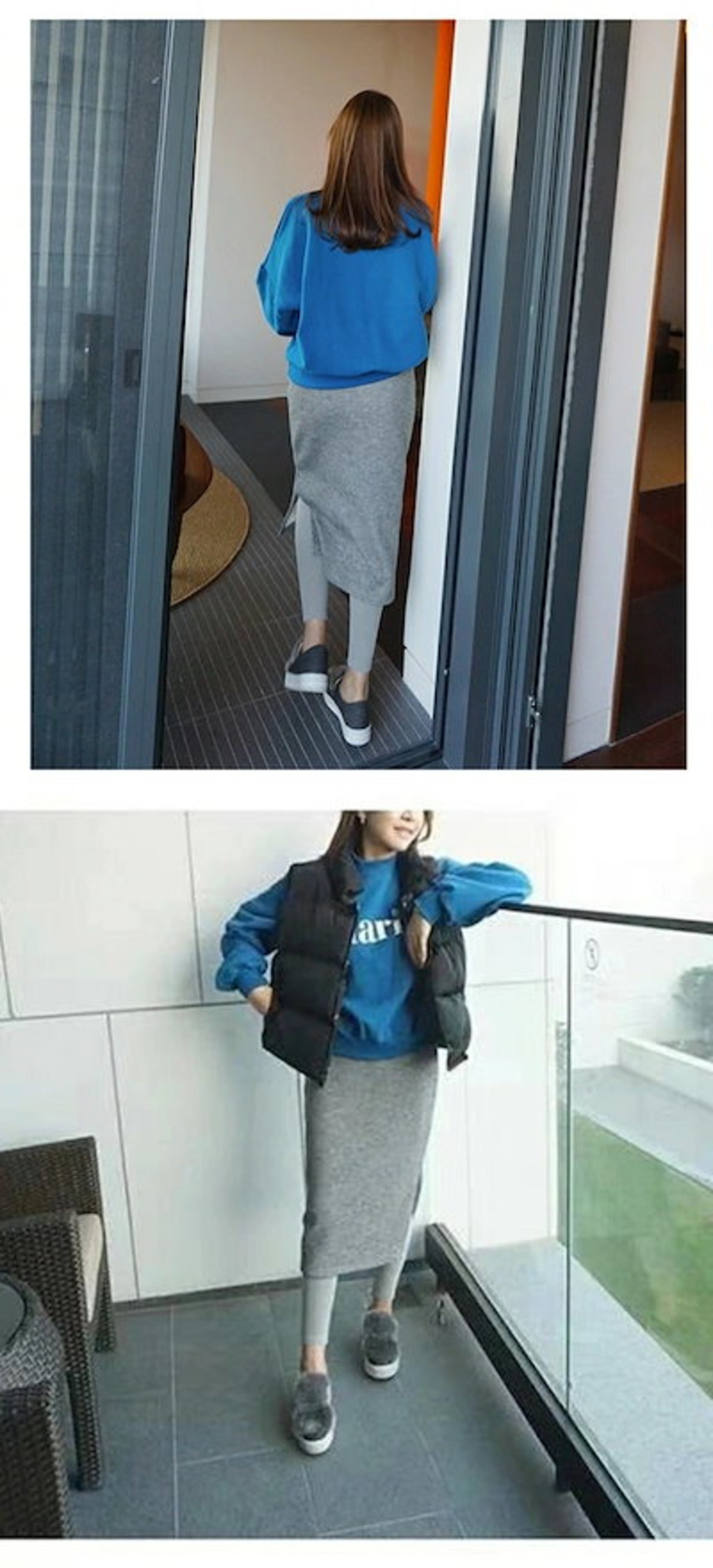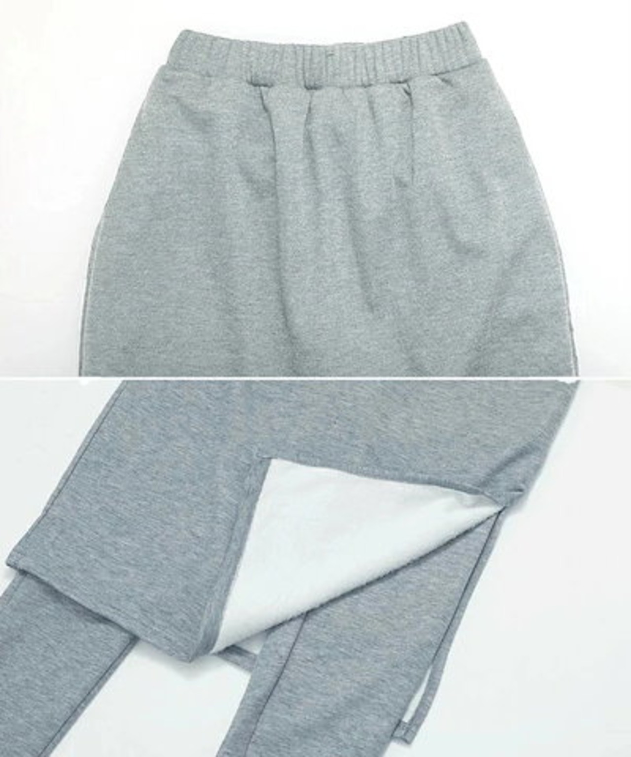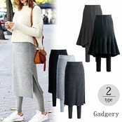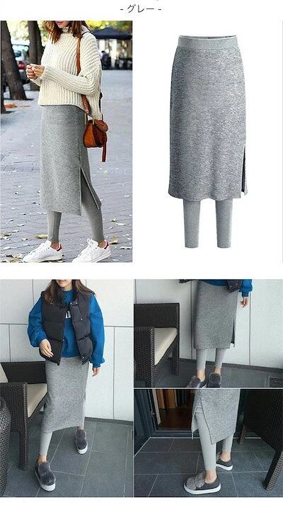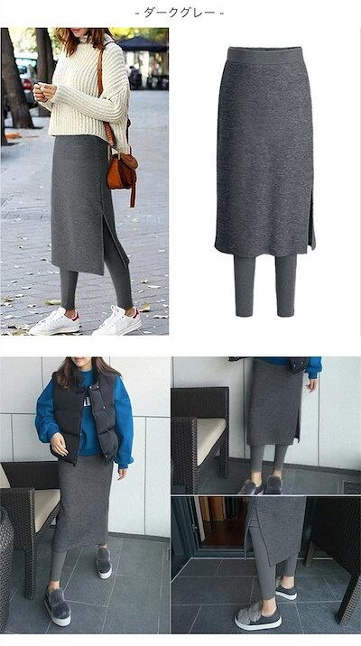 【即納】スカート付きレギンス レディース ボトムス スパッツ 裏起毛 サイドスリット ひざ丈 膝丈 ウエストゴム スカート レギンス 体型カバー 冬コーデ 大人 可愛い 一体型 細身 タイト シルエ | koookooo