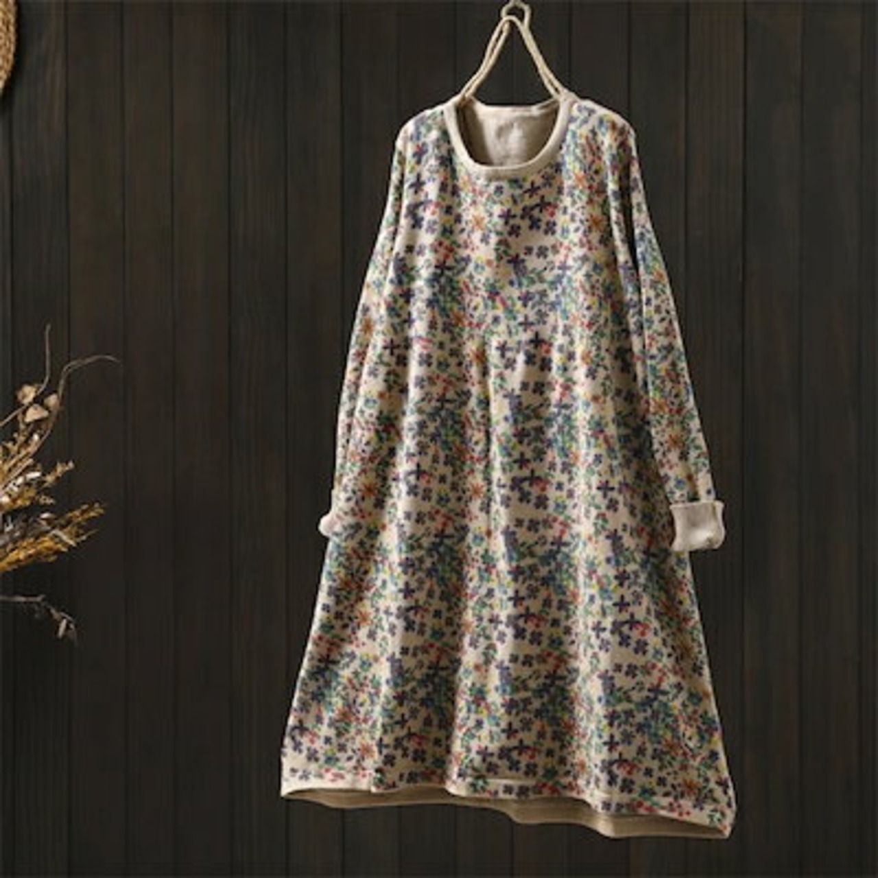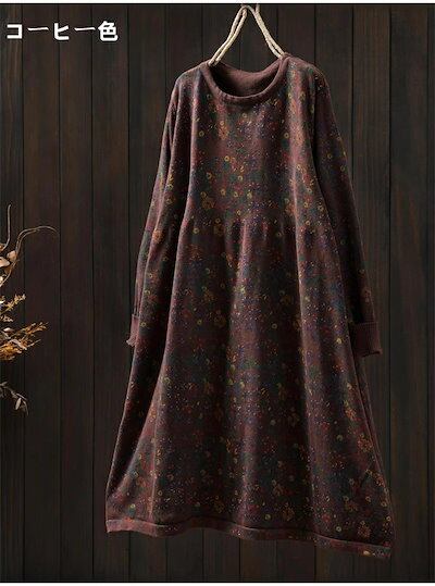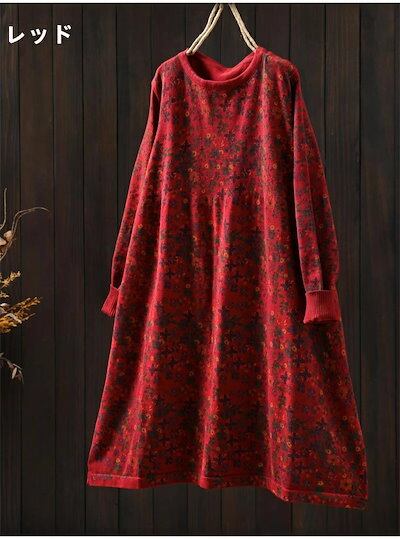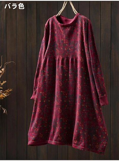 ニット ワンピース 花柄 ニットワンピ レディース チュニック ワンピース クルーネック 秋 冬 aライン 花柄 ニット チュニック aライン ワンピース きれいめ 長袖 膝丈 ひざ丈 ミディアム丈 | koookooo