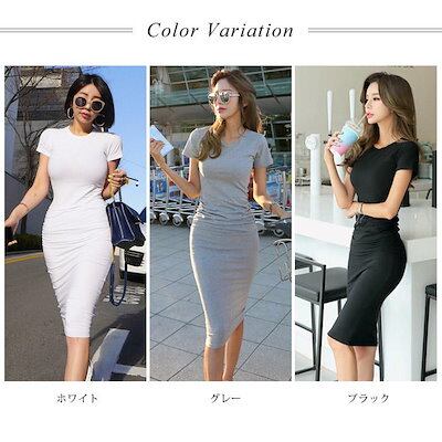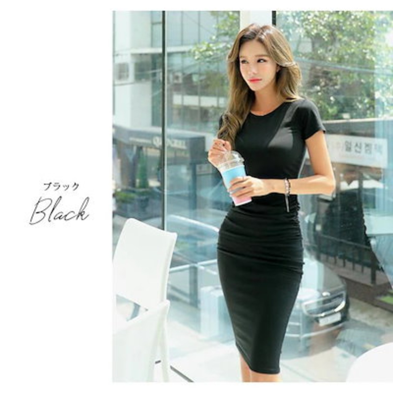 ワンピース レディース 春 夏 春夏 黒 白 タイト ワンピース タイトワンピ 半袖 ワンピ ミモレワンピ セクシー ミディアムワンピ ひざ丈 半袖ワンピ タイトワンピース ギャザー カジュアル | koookooo