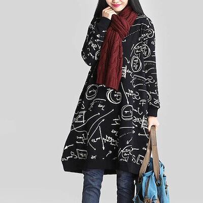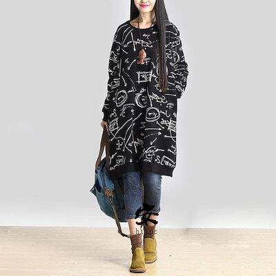 チュニック 大人可愛い チュニックワンピース ワンピース レディース 森ガール ゆるかわ 膝丈 長袖 大きいサイズ 大人 上品 ワンピ ミディアム ミディ丈 レトロ 体型カバー ひざ丈 春 秋 冬 ゆ | koookooo