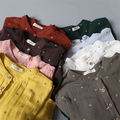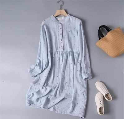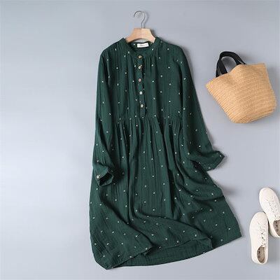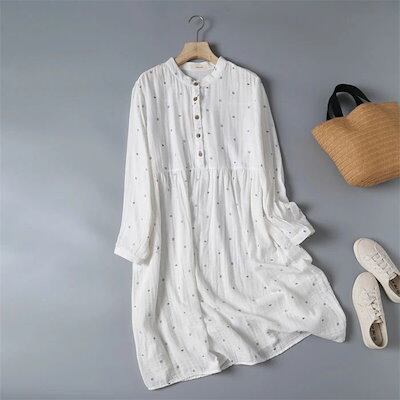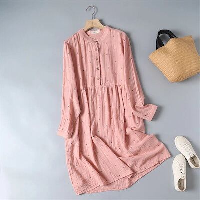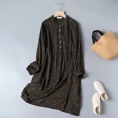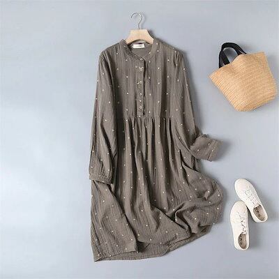 30代 春 コットン ひざ丈 着痩せ 40代 綿 夏 ワンピース 大きいサイズ 50代 シャツワンピース 森ガール 体型カバー レディース カジュアル 刺繍 ワンピース ハイウエスト 柔らかい フレア | koookooo