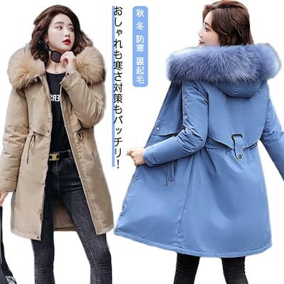 ファー付き 中綿ジャケット モッズコート レディース ロングジャケット 中綿コート 防寒 アウター フード付き 裏ボア 裏起毛 もこもこ ファーコート 秋 冬 おしゃれ カジュアル 韓国ファション M | koookooo