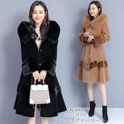 フェイクファーコート レディース 毛皮コート 冬服 フード付き もこもこ 暖かい ロング丈ジャケット 韓国風 アウター 上品 大人 着痩せ 30代 40代 50代 パーディー きれいめ 上 | koookooo