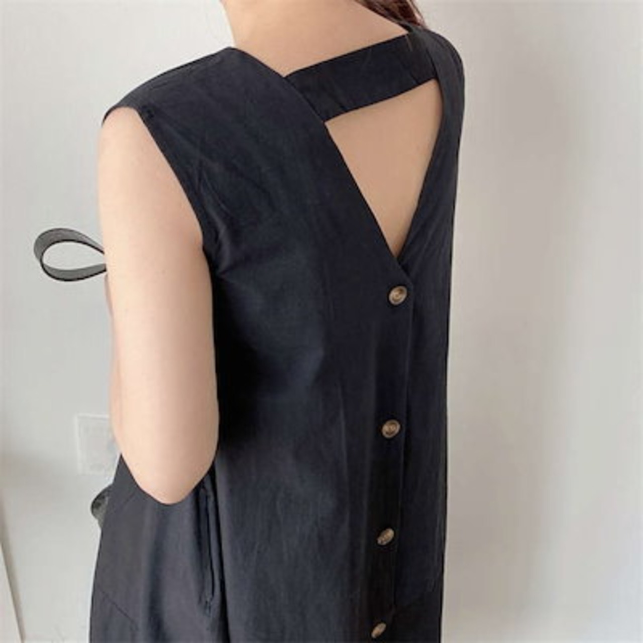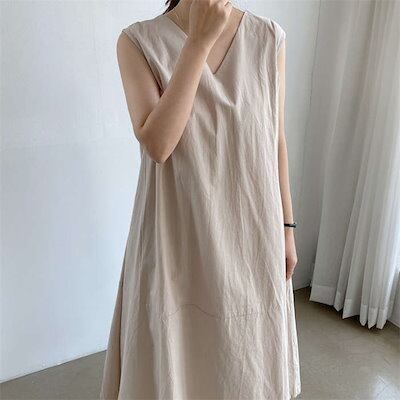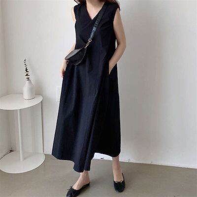 ワンピース レディース きれいめ カジュアル ノースリーブ ロングワンピース ミモレワンピース フレアワンピース ワンピ ロング ミモレ丈 Vネック フレア 後ろボタン リゾートワンピース 綿 コット | koookooo