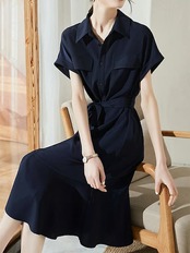 マーメイドワンピース シャツワンピース レディース 夏 半袖 フレンチスリーブ ロングワンピース ボタン 前開き ウエストリボン付き ゆったり 大人可愛い おしゃれ 大きいサイズ 通勤 カジュアル 体 | koookooo