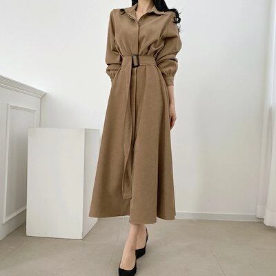 ワンピース レディース 春 長袖 ロングワンピース マキシワンピース フレアワンピース 前開き ボタン 羽織り ベルト付 ロング丈 オリジナル カジュアル 通勤 オフィス 入学式 入園式 卒業式 卒園 | koookooo