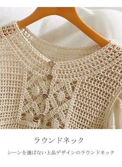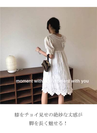 ワンピース レディース 夏ワンピース 膝丈ワンピース フレアワンピース レース Uネック 5分丈 シースルー 立体花 バルーンスリーブ フリル裾 プルオーバー ボタン留め 透かし彫り きれいめ デザイ | koookooo