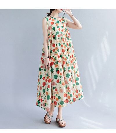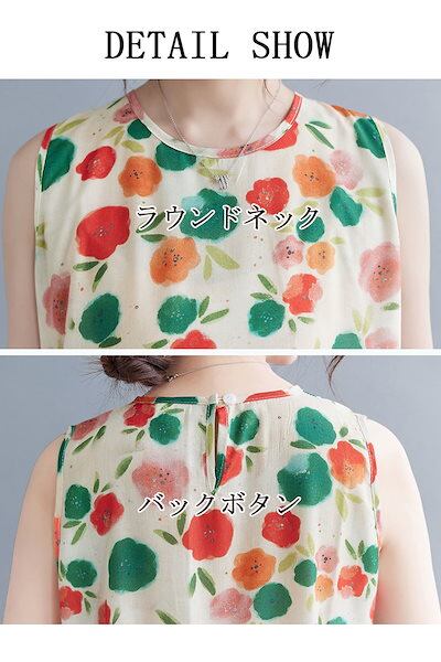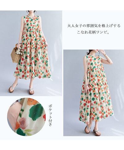 新品更新 ティーアド ワンピース ノースリーブ 花柄ワンピース レディース ロングワンピース 花柄 ギャザー タック バックボタン ラウンドネック ポケット付き フリル ワンピ ロング丈 ミモレ丈 ゆ | koookooo