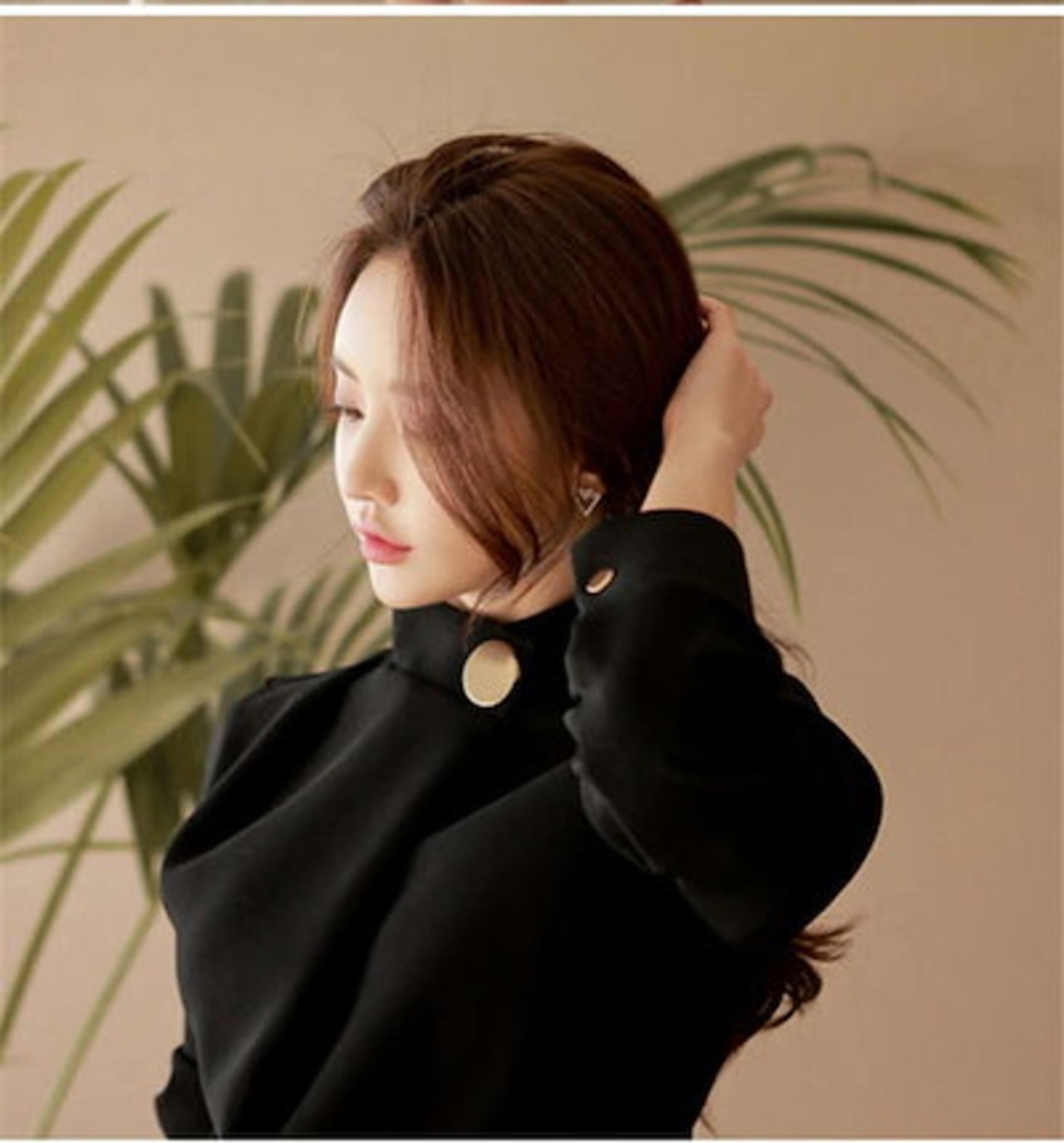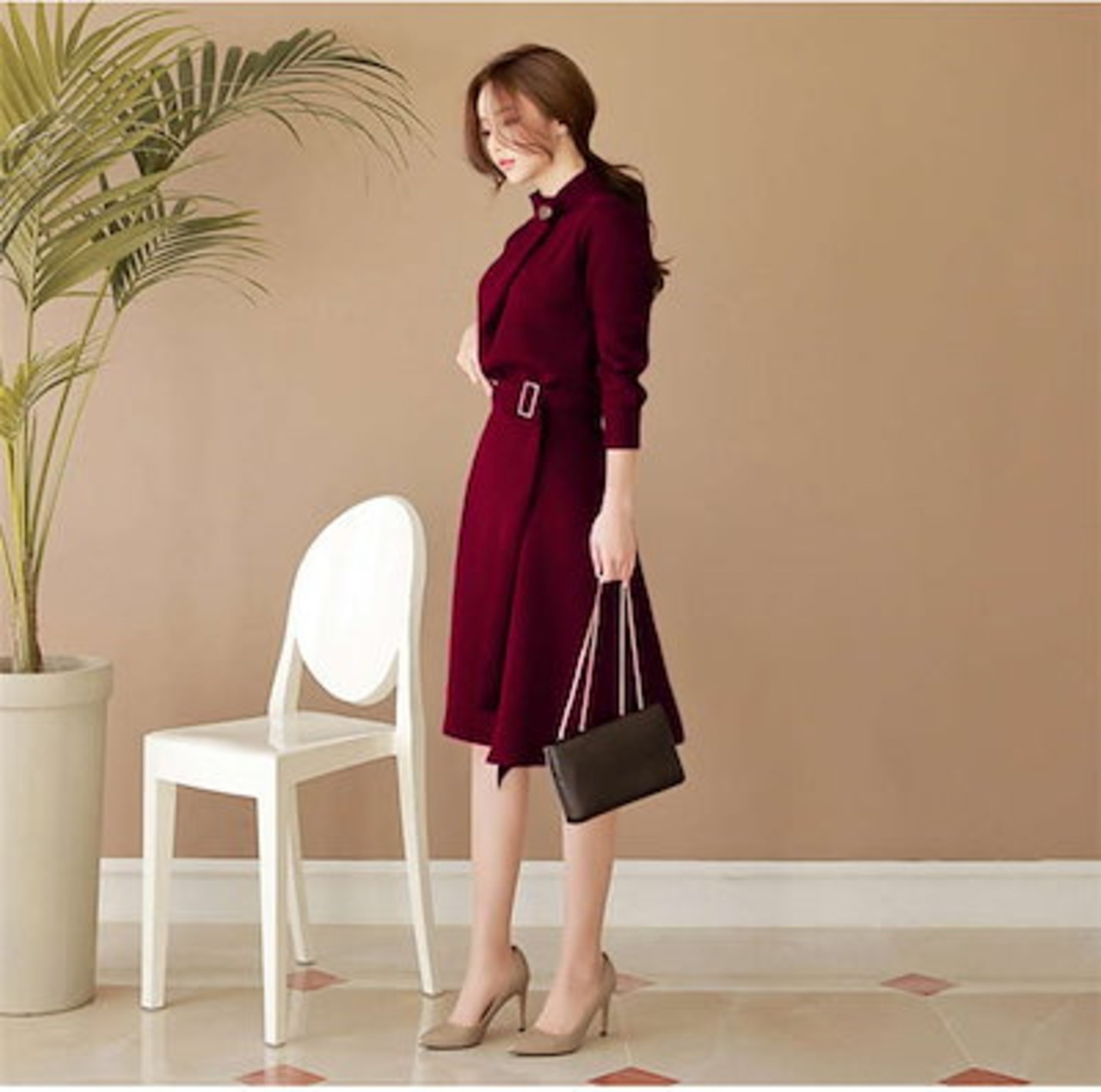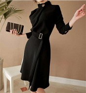 新品 膝丈ワンピース ワンピース レディース 秋 長袖 秋冬 きれいめ 美 シルエット ウエストマーク ハイネック スリット ボタン ポイント きれいめ 大きいサイズ 秋 冬 20代 30代 40代 | koookooo