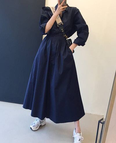 3色 ワンピース レディース ロング ロングスカート シャツワンピース おしゃれ 大人可愛い 長袖 個性的 エレガント きれいめ ゆったり オーバーサイズ 襟つき シンプル ボタン 華やか レトロ ス | koookooo