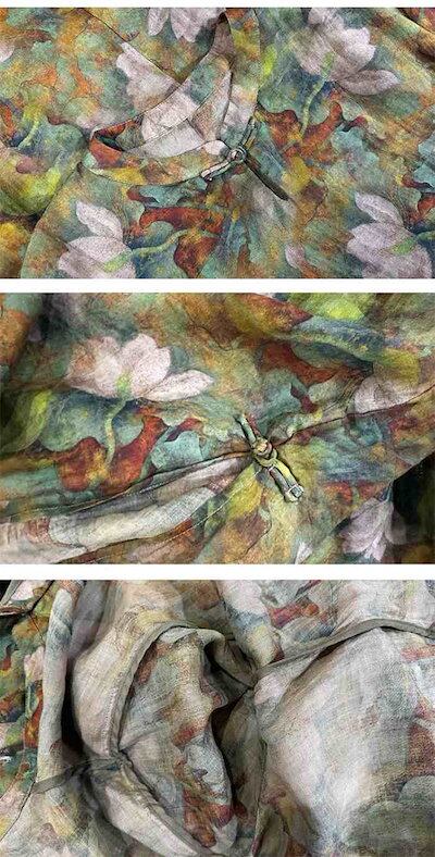 リネン ブラウス レディース 夏 5分袖 半袖 チュニック ワンピース チャイナボタン シャツワンピース スリット 麻 スタンドカラー 半袖 ロングブラウス ロング トップス 花柄 カジュアル おしゃ | koookooo