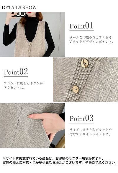 ワンピース レディース ニット ノースリーブ 袖なし ベストワンピース ミディ丈 膝丈 Vネック フロントボタン ゆったり おしゃれ カジュアル キレイめ シンプル 大人 無地 体型カバー 春 秋 冬 | koookooo