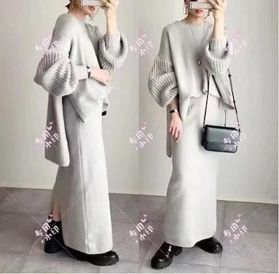 【セット】2025秋冬新品 レディース 秋冬 レディースセットアップ ニット アウター 体型カバー トップス おしゃれ セーター ニットスカート 二点セット 上下セット セットア | koookooo