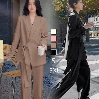 セットアップ 春カジュアルゆったり スーツ セットアップ レディース 通勤 ジャケット/ワイドパンツ 二点セット 春冬 アウター フォーマル ビジネススーツ ママ スーツ 卒園式 卒業式 | koookooo