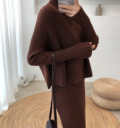 【2枚購入で 2oo円OFF! 】秋冬 新作 おしゃれ 気質 セーター ワイドパンツ セットアップ 長袖セーター 上下レディースセットアップ ニット アウター 二点セット ベーシックニット 福袋 20 | koookooo