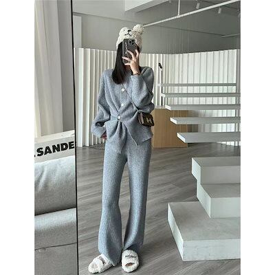 【2枚購入で 2oo円OFF! 】秋冬 新作 おしゃれ 気質 ニット アウター 二点セット レディースセットアップ 上下セット セーター ワイドパンツ セットアップ 通勤 シンプル 福袋 2025福袋 | koookooo