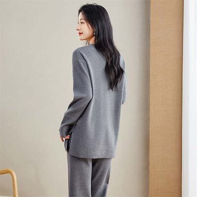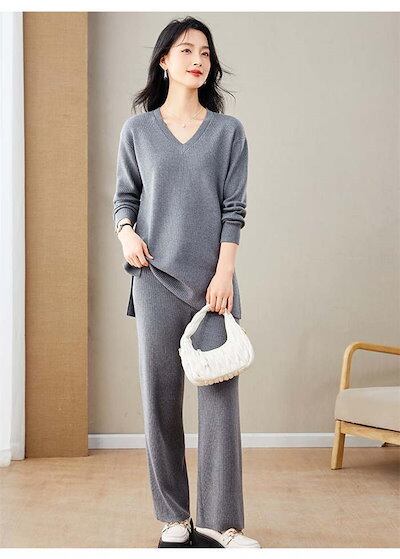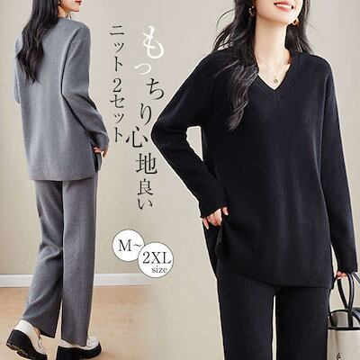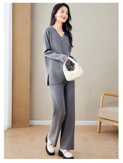 2025新作 韓国風ニット セットアップ パンツ ニットパンツ レディース きれいめ 秋冬 長袖 冬 Vネック ウール セーター ワイドパンツ ワンマイルウェア 2点セット 上下セット ロングパンツ | koookooo