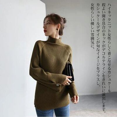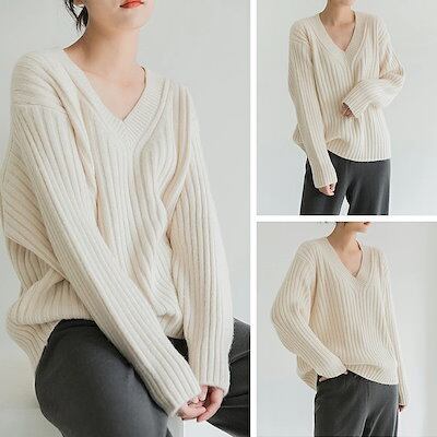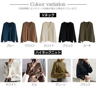 ニット セーター チャンキーニット レディース 高見えトップス 秋冬 Vネック ハイネック 長袖 厚手 シンプル デザイン ロング リブニット 無地 カットソー ニットウェア きれいめ シンプル カジ | koookooo
