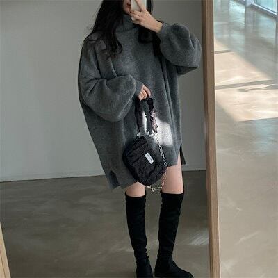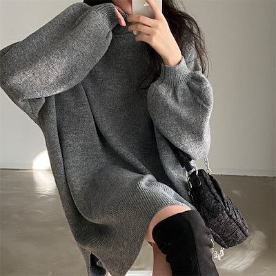 セーター ニット ハイネック レディース 秋冬 ロングセーター ニットセーター ロング丈 タートルネック 長袖 ロングニット カットソー プルオーバー 大人 無地 カジュアル 柔らかい ゆっ | koookooo