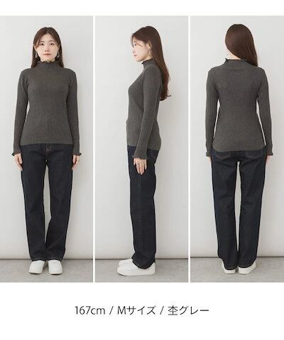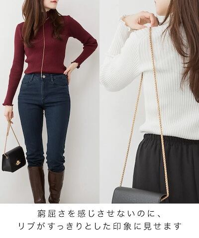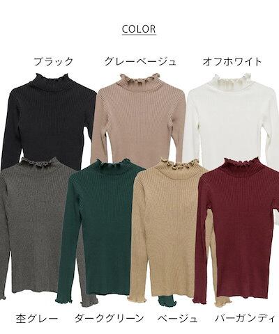 ニット レディース メロウリブニット 長袖 トップス 秋 冬 春 リブニット セーター ハイネック 大きいサイズ M L LL きれいめ カジュアル オフィス シンプル 無地 コットン 綿 インナー | koookooo