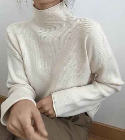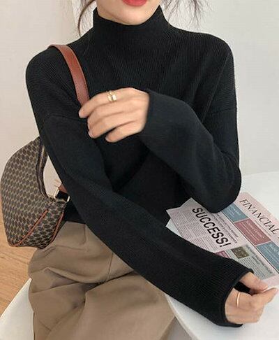 ?売促? 秋物 レディース ニット ハイネック 長袖 トップス セーター おしゃれ リブニット タートルネック カジュアル 無地 ニットセーター 秋冬 切っりパなし ドロップショルダー トップス イン | koookooo