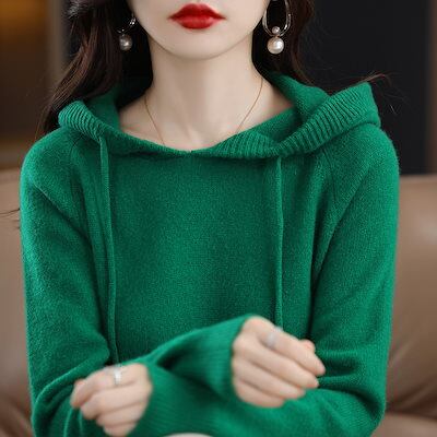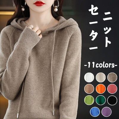 ロンT 初秋カシミヤタッチ フード付きニット 長袖トップス パーカー レディースセーター 怠惰な風カジュアルスウェットニット ニットセーター