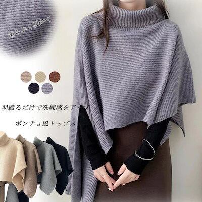 ハイネック ニット ベスト ローゲージ ニットベスト タートルネック レディース 秋 冬 ポンチョ ジレ ローゲージニット ケープ マント ショール チャンキーニット 秋冬 レイヤード リブニット フ | koookooo