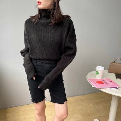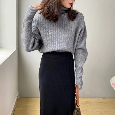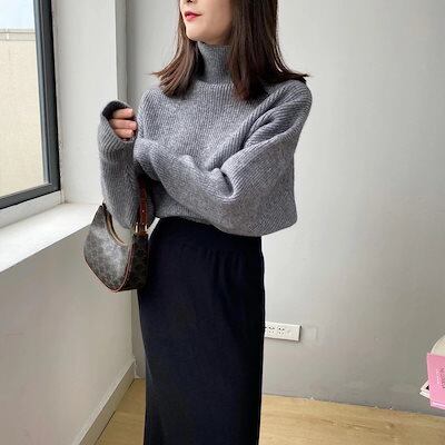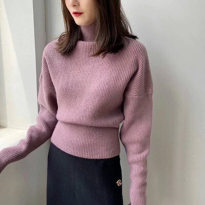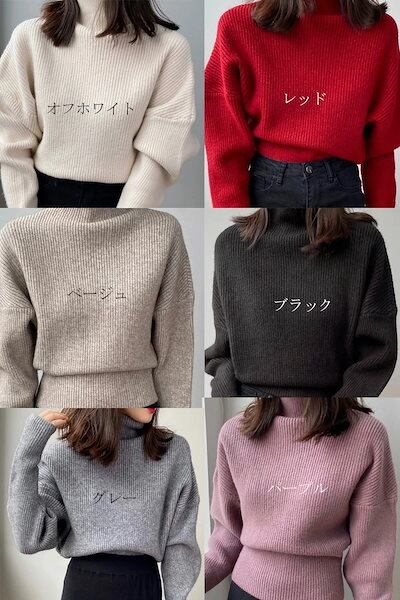 即?ドルマン セーター ハイネック ニットセーター レディース ニット タートルネック トップス ハイネックセーター 長袖 リブ カットソー ハイネックニット ドロップショルダー ストレッチ 厚手 体 | koookooo