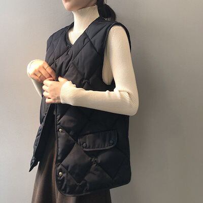 自信を持っておすすめ!上品 キルティング ベスト レディース 秋 冬 防寒 かわいい 中綿 ベスト ショート丈 アウター ノーカラー お洒落 暖かい 軽量 フロントボタン フェイク ダウン ダウンベス | koookooo