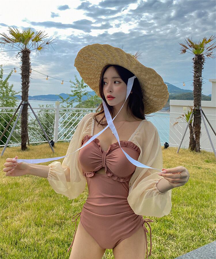 異素材のパフスリーブがこだわりのワンピース水着。