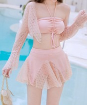 盛れる水着 レディース 体型カバー可愛いレースアップ ホルターネック水着 ジャガードレースラッシュガード バンドゥビキニ 3点セット 大人セパレート水着 水遊び