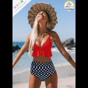 レディース ビキニ セパレート 水着 2点上下セット フレア セクシー 夏 プール 温泉 ビーチ★★ 水着 レディース おしゃれ ビーチ ビキニ リゾート プール 体型カバー スリム 可愛い インスタ映え セパレート 露出控えめ 盛れるハイウエスト 韓国 日焼け対策 競泳 スイムウェア日焼け防止 スタイルアップ 着痩せ