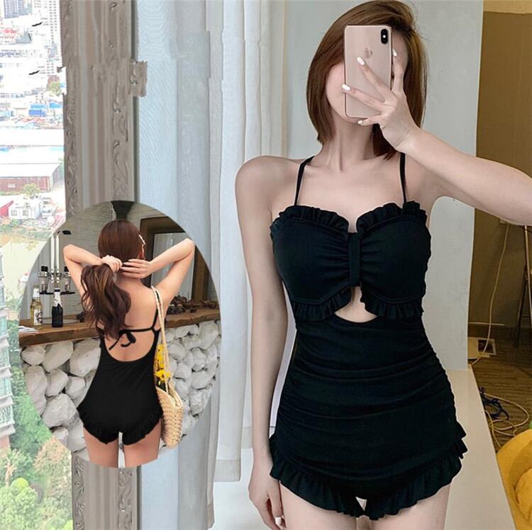 INSスタイル 百掛け ブラック 学生 水着 カバー腹 スリム 保守的 温泉 ワンピース水着