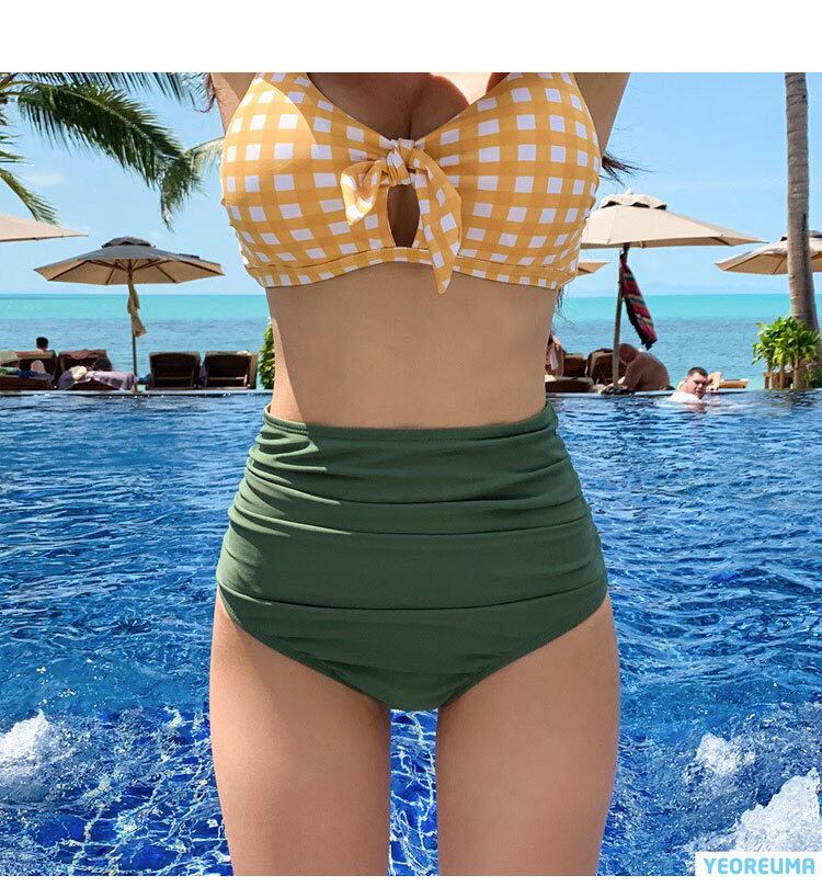 みずぎ スイムウェア チェック柄 女性 お洒落 ワイヤーなし 大人 水着 レディース ビキニ 夏 海水浴 旅行★★ 水着 レディース おしゃれ ビーチ ビキニ リゾート プール 体型カバー スリム 可愛い インスタ映え セパレート 露出控えめ 盛れるハイウエスト 韓国 日焼け対策 競泳 スイムウェア日焼け防止 スタイルアップ 着痩せ | koookooo