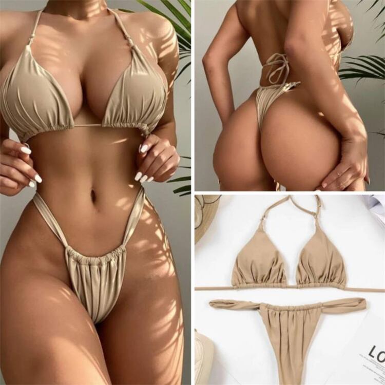 セクシー ピュアカラー スプリット ビキニ レディース 水着 スリム