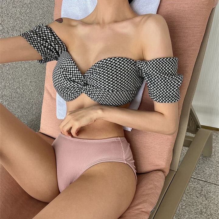 大人可愛い ビキニ Vネック 半袖 上下セット ワイヤー無し水着 パッド付 三角パンツ 2点セット水着 クロス★★ 水着 レディース おしゃれ ビーチ ビキニ リゾート プール 体型カバー スリム 可愛い インスタ映え セパレート 露出控えめ 盛れるハイウエスト 韓国 日焼け対策 競泳 スイムウェア日焼け防止 スタイルアップ 着痩せ | koookooo