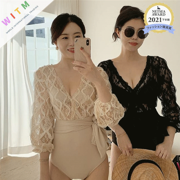 レース水着 長袖ビキニ レース ビキニワンピース レディース ビーチ★★ 水着 レディース おしゃれ ビーチ ビキニ リゾート プール 体型カバー スリム 可愛い インスタ映え セパレート 露出控えめ 盛れるハイウエスト 韓国 日焼け対策 競泳 スイムウェア日焼け防止 スタイルアップ 着痩せ | koookooo