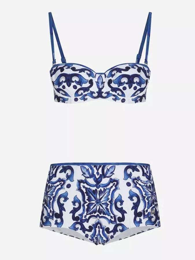 ワンピースプリント水着,青いビキニ,スカート付き,女性用,包帯,ビーチ用,エレガント,夏 セパレート水着 ビキニ レディース T240618195542_04