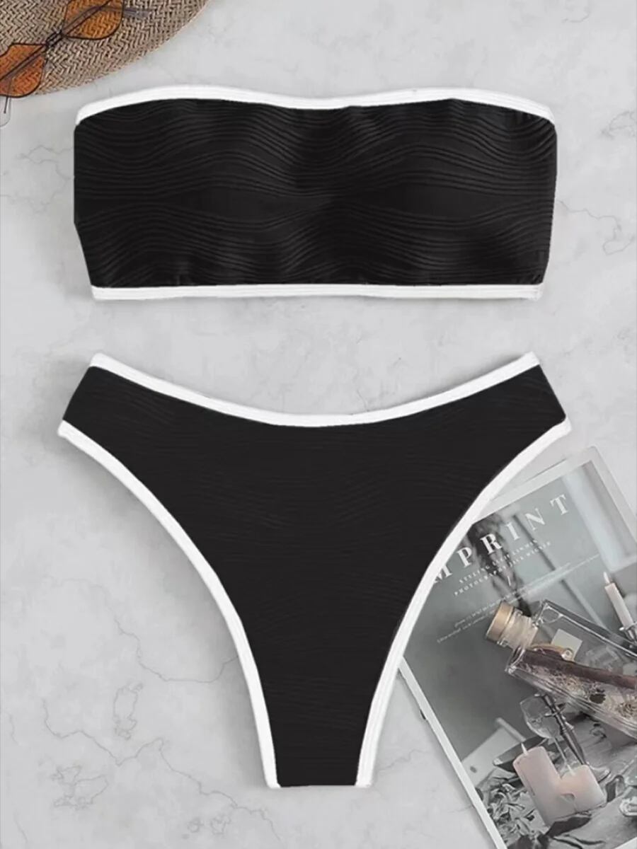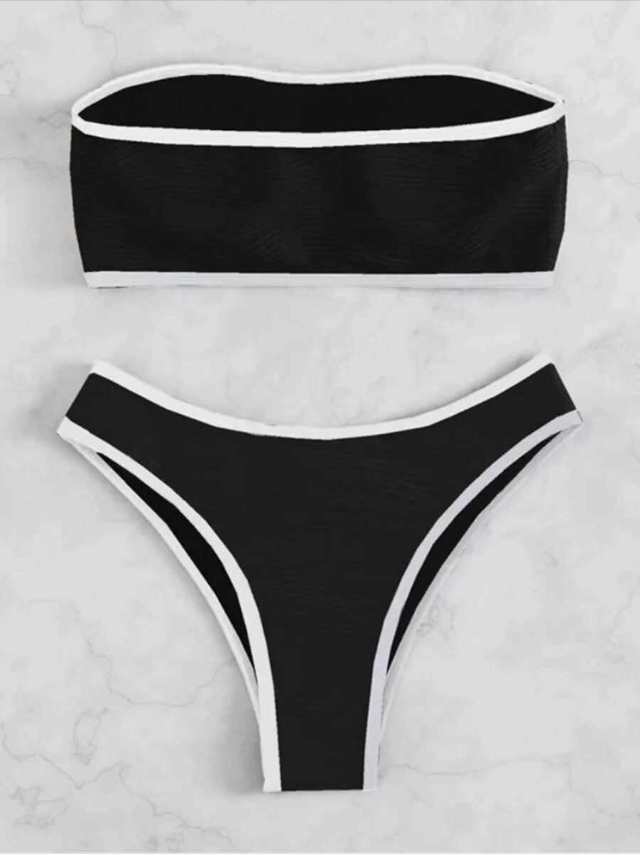 女性のための対照的なバインディングビキニ,セクシーなひも水着,プッシュアップ水着,女性の水着,夏のビーチウェア2023 セパレート水着 ビキニ レディース T240618195604_02 | koookooo