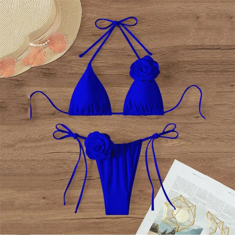 女性のためのセクシーな白いトライアングルビキニ,3Dフラワープリントのホルターネックブラ,ブラジルの三角形のパンティー,水着2022 セパレート水着 ビキニ レディース T240618195649_03 | koookooo
