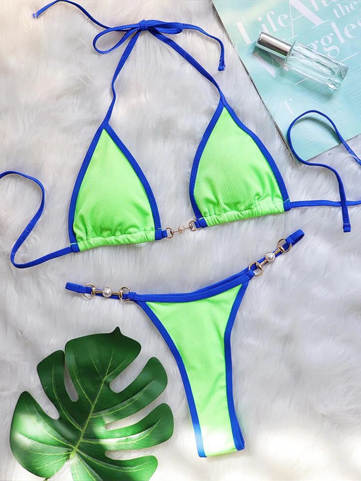 女性用ツーピースリブビキニセット,ホルターネック,スプライシング,水着,水泳,5色,k4392 セパレート水着 ビキニ レディース T240618200027_03