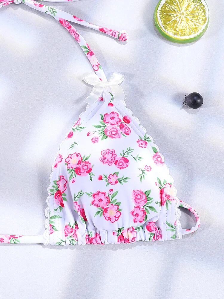 女性用フローラルビキニ,ピンクの水着,弓付き水着,ローウエストの水着,セクシーな包帯スタイルのビーチウェア,2022 セパレート水着 ビキニ レディース T240618202329_01 | koookooo