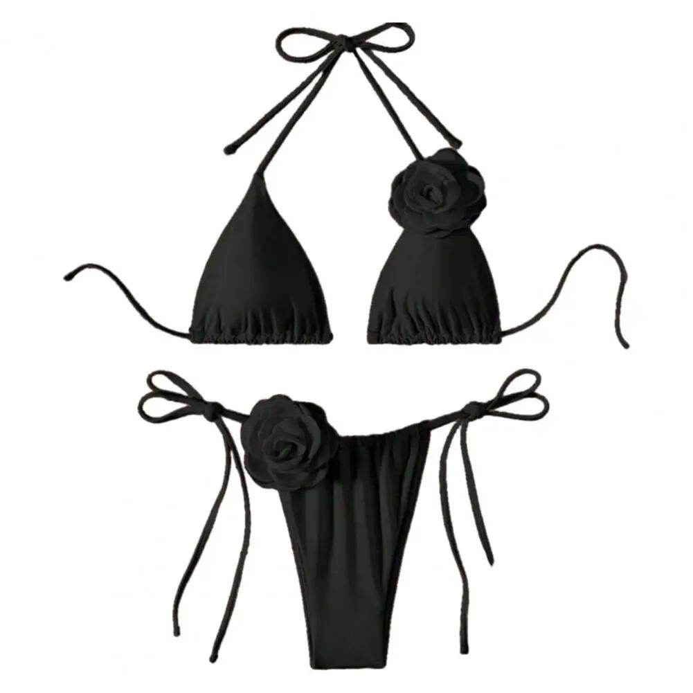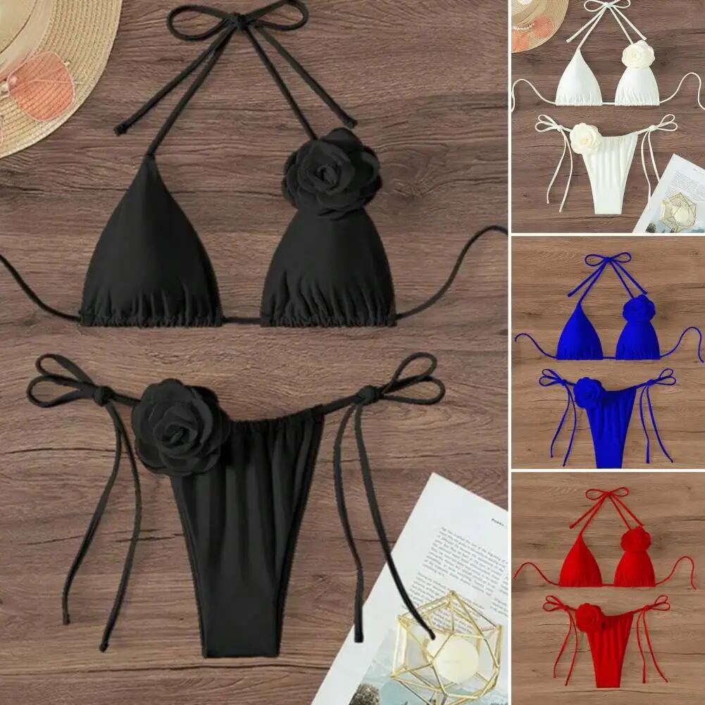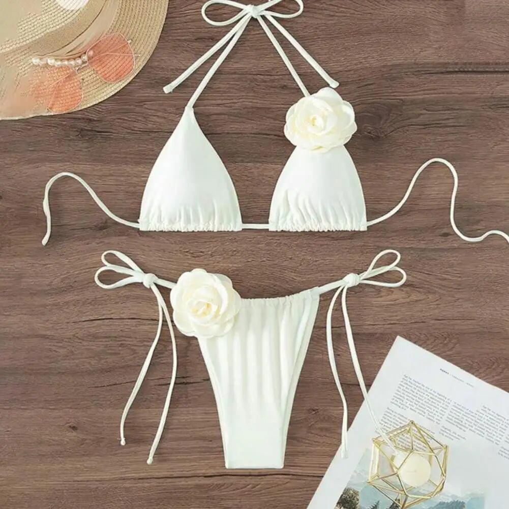 女性の裸の肩のビキニセット,偽物の花の装飾が施されたフェミニンな水着,ホルターネック,取り外し可能なパッド,2個 セパレート水着 ビキニ レディース T240618202416_01 | koookooo