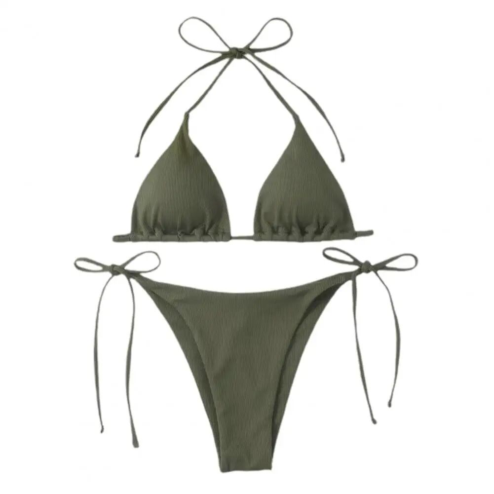 女性用リブバックレスビキニセット、水着、トライアングルブラ、サイドタイ、ひも、水着、ビーチウェア、水着、パッド、ホルター、セットあたり2個 セパレート水着 ビキニ レディース T240618202800_03 | koookooo