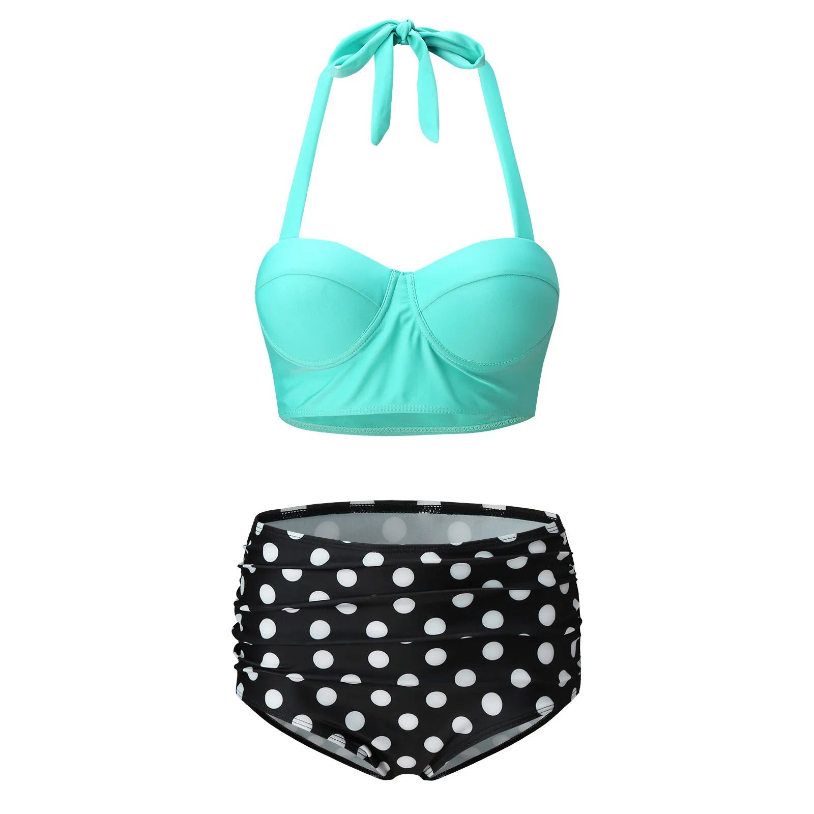 女性用レトロプリントビキニ,水玉水着,ショーツ,腕立て伏せ,ハイウエスト,2022 セパレート水着 ビキニ レディース T240618202829_01